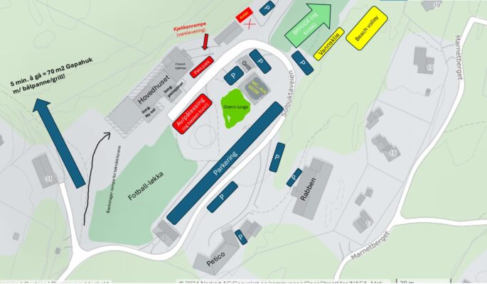 Oppe ved grillbua, midt på uteområdet, fins det toaletter, dusj og vaskemaskin for våre båtgjester. (Gratis).